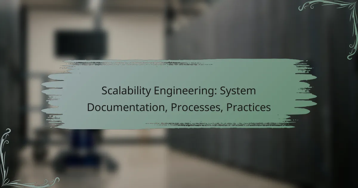 Scalability engineering focuses on system documentation, processes, and practices that collectively impact system performance and scalability. Effective documentation is essential as it enhances team collaboration and problem-solving. Additionally, key processes such as scalability requirement assessment and testing methods ensure that systems can grow and adapt to changing needs.